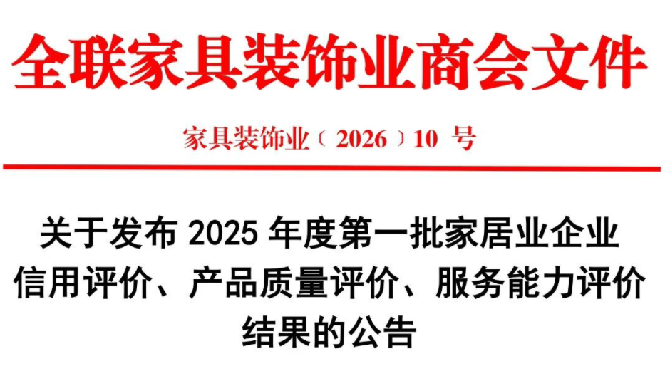 关于发布2025年度第一批家居业企业信用评价、产品质量评价、服务能力评价结果的公告
